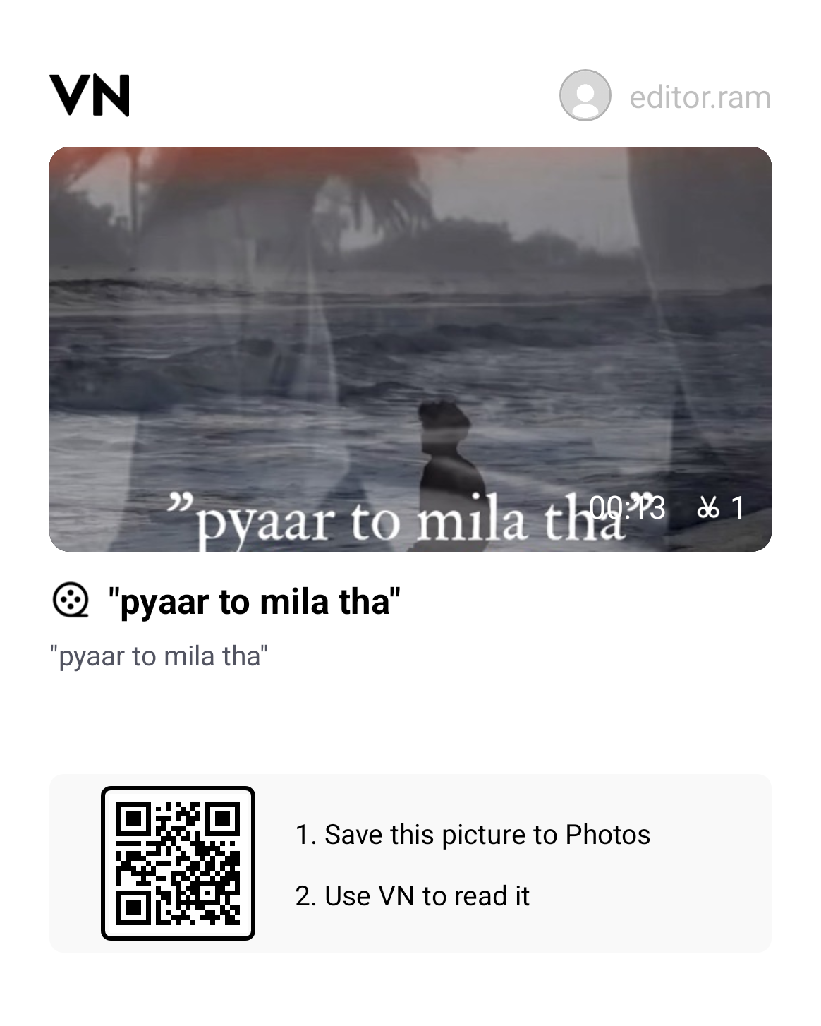 How To Use VN Template:Screenshot lo QR code kaVN App open karoScan option par click karoQR code scan karoTemplate download karoApni photos/videos select karoExport karke Important:VN latest version use karoInternet connection ON rakho
